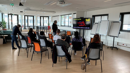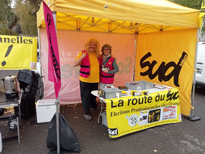 Lors de nos visites, on a organisé quelques animations plutôt chouettes et originale. Il y a eu du Barnum, de la distribution directement à votre poste de travail, et même une HIS (Heure d'information syndical) avec une projection et un débat autour d'une version courte du film "Par la fenêtre et par la porte", un projet dont SUD peut être fier d'être à l'origine.